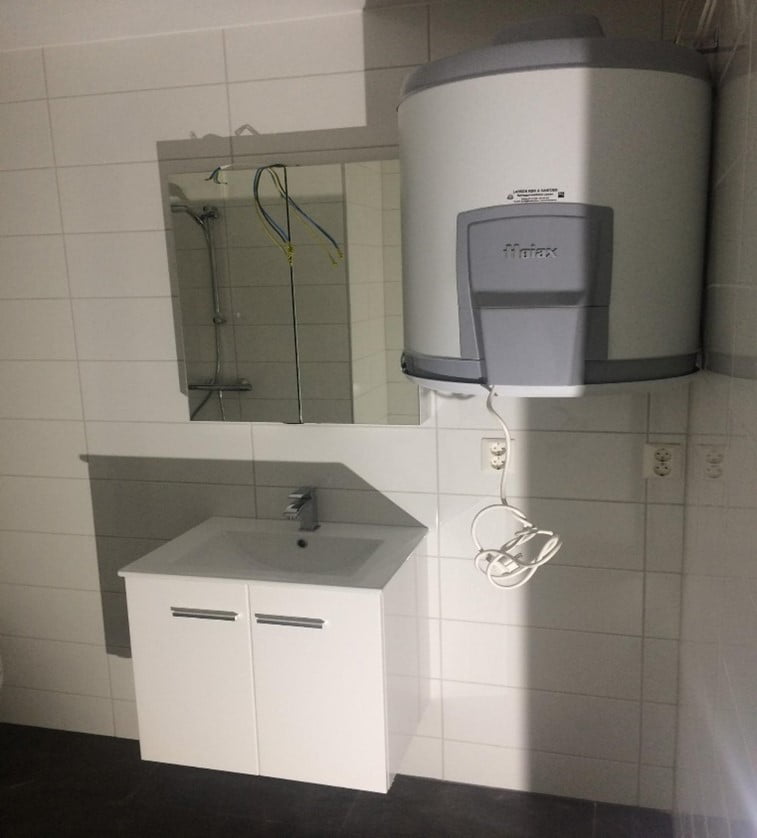 Eksempel på løsning VVbereder på bad. Mulighet for vaskemaskin under bereder.